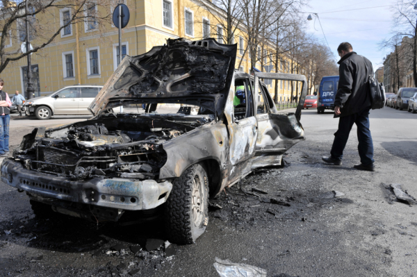 Вечерний пожар в Купчино — иномарка сгорела дотла за считанные минуты